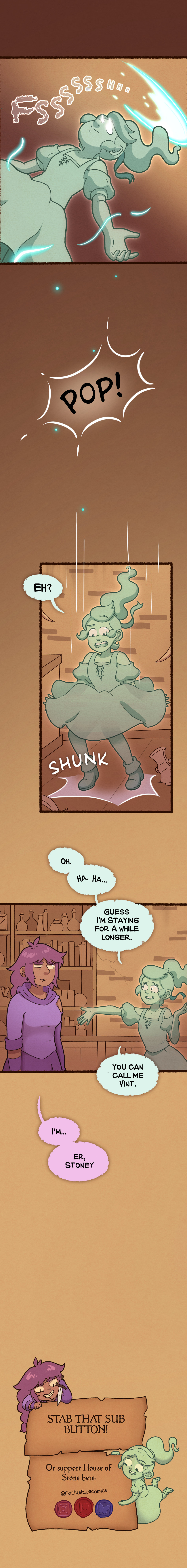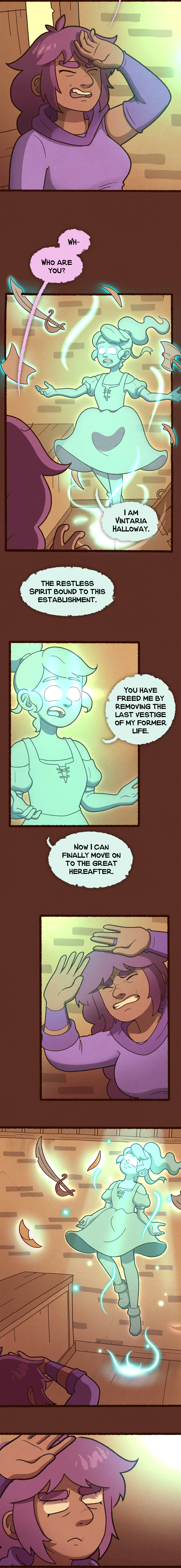 Wrenth “Stoney” Stonehouse spent her youth as an adventuring rogue, but has traded in her daggers and lockpicks for a simple retirement running a general goods store in the crumbling district of Briarfold. Her plans to quietly fade off into the shadows are thwarted when the ominous spectre haunting her shop turns out to be Vintaria Halloway, the persistently upbeat and chipper ghost of the building’s former occupant. Can Stoney manage her business, her unique new employee, and her past?